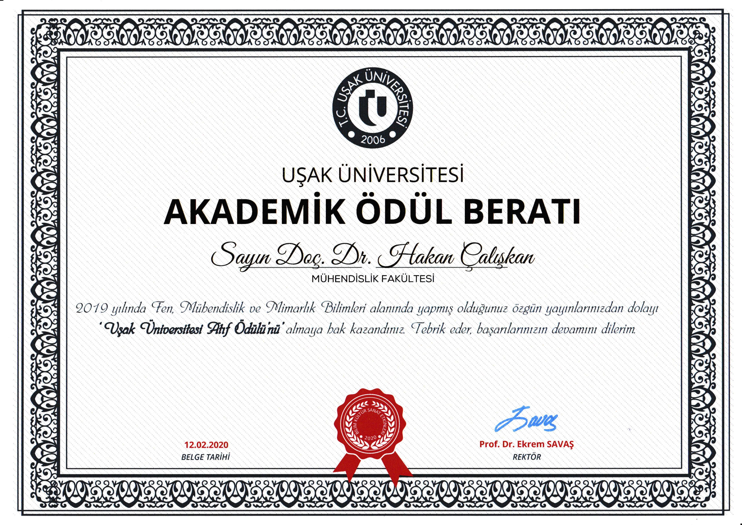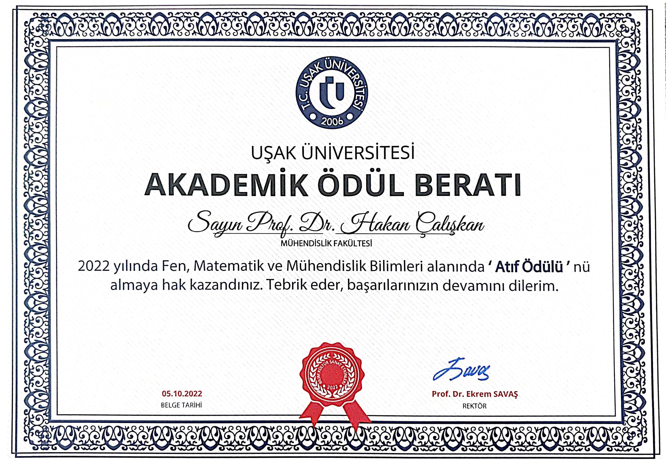 Uşak Üniversitesi Atıf Ödülü