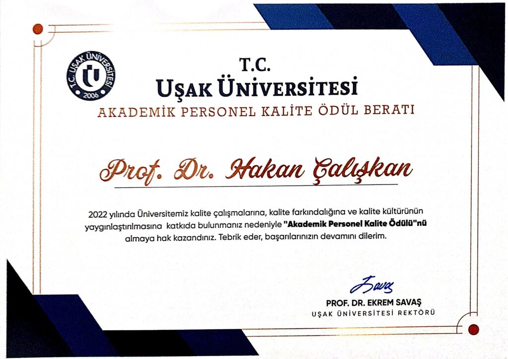Uşak Üniversitesi Akademik Personel Kalite Ödülü
